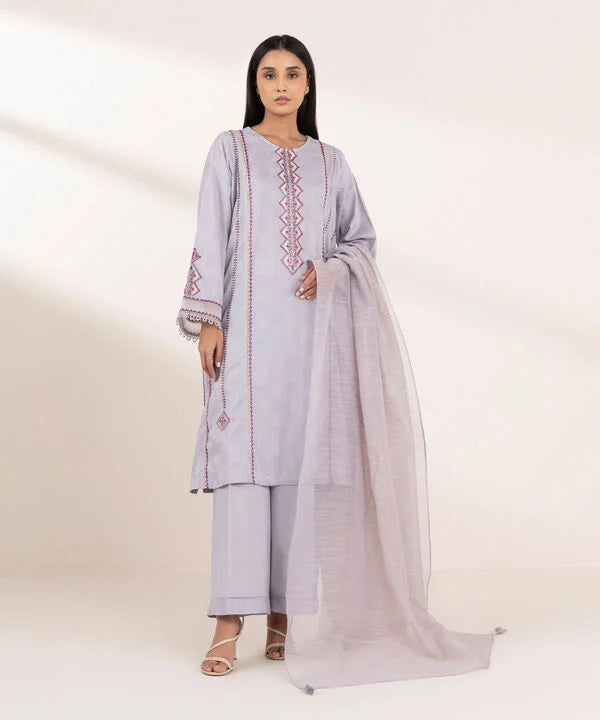 EMBROIDERED JACQUARD SUIT | 3 PC READY MADE | SAPPHIRE